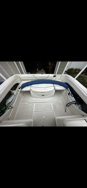The next time you find that perfect little cove or that quiet little beach, why pack up and leave? With the 215 Weekender, you can relax and settle in for the night. And not in some tight, little cubby cabin. You'll get a good night's sleep in the Weekender's roomy, double-bed V-berth. Then fix breakfast in the galley, complete with sink and built-in ice chest, and you'll be ready to get out and do it all over again.