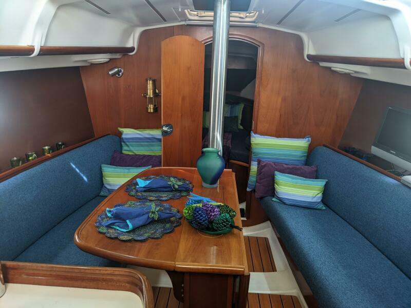 The Beneteau 323 was first introduced in 2004 and is equipe'd to appeal to buyers looking for a mid sized boat with a big boat feel, with generous interior volume and a large aft stateroom, combined with a roomier cockpit that incorporates a swing away Helm wheel for ease of access while at the dock or out on the Hook, this along with the a helm seat that is attached in a way that allows it to be tilted out of the way for simple and easy access to the transom boarding platform.