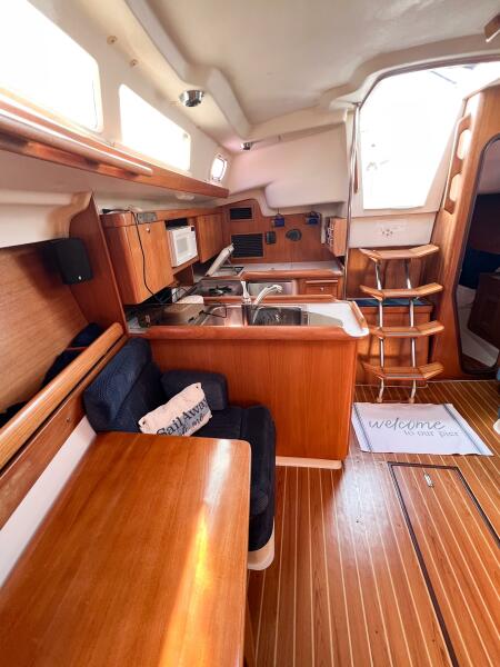 HIDE AWEIGH is a well-maintained 2005 Catalina 350 equipped for comfortable coastal cruising. Features include a full cockpit enclosure, air conditioning/heat, custom captain’s seat, pet-safety netting, and a diesel engine showing only ~1,350 hours. The popular Catalina 350 layout provides a spacious cockpit, two private cabins, large galley, and bright, comfortable salon. A turnkey cruiser—perfect for couples, families, and pet-friendly adventures.