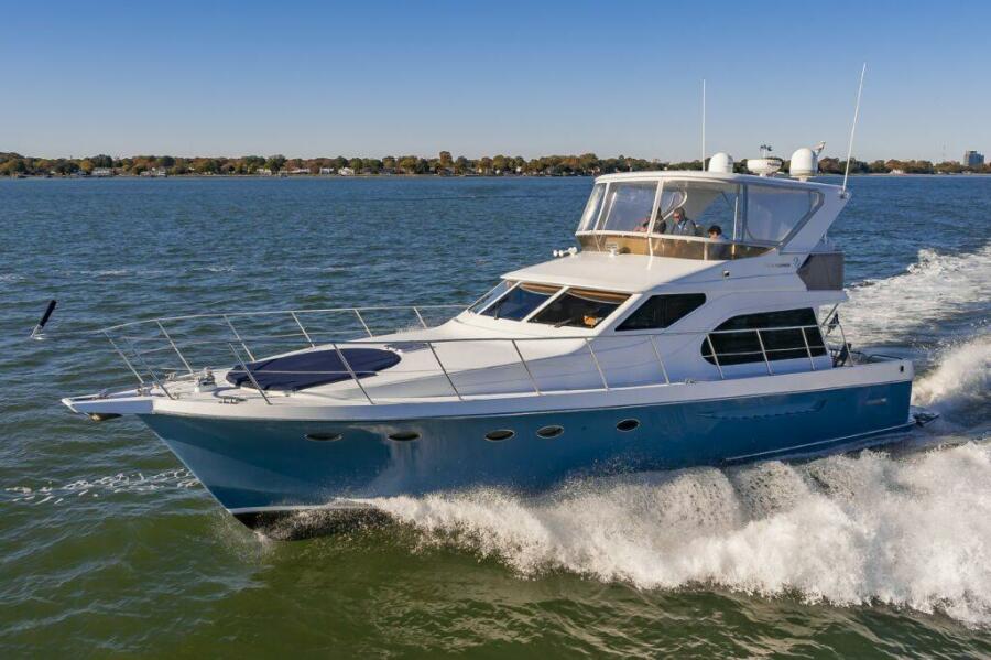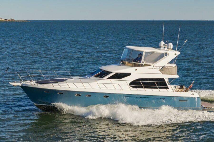 The 52' Ocean Alexander Sedan Bridge is a Twin Engine, straight Inboard, 3 stateroom, 2 head and Shower Beauty. With Upper and Lower Helm Control Stations, Bow Thruster and Hydraulic Swim Platform.