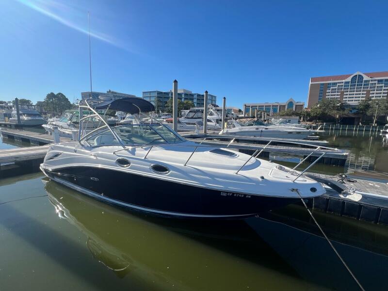 Introduced in 2005, the Amberjack rides on a solid fiberglass deep-V hull with a trailerable 8'6" beam. The single level cockpit came standard with a fold down rear seat, transom fish and storage box, port and starboard rod storage, and four rod holders. Aluminum arch with four rocket launchers allows for additional fishing options. Below , the compact interior has a full service galley, standup head with shower and sleeps two. The single 320hp Mercruiser I/O delivers a top speed of 38 knots.