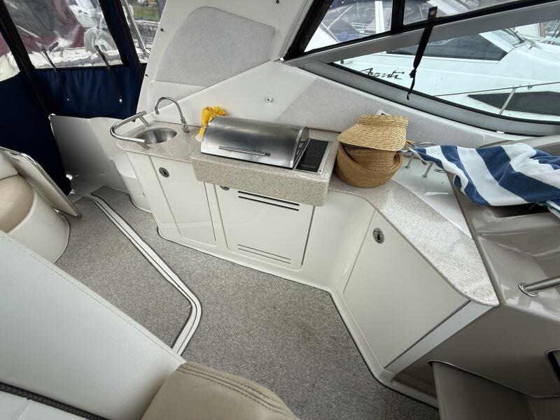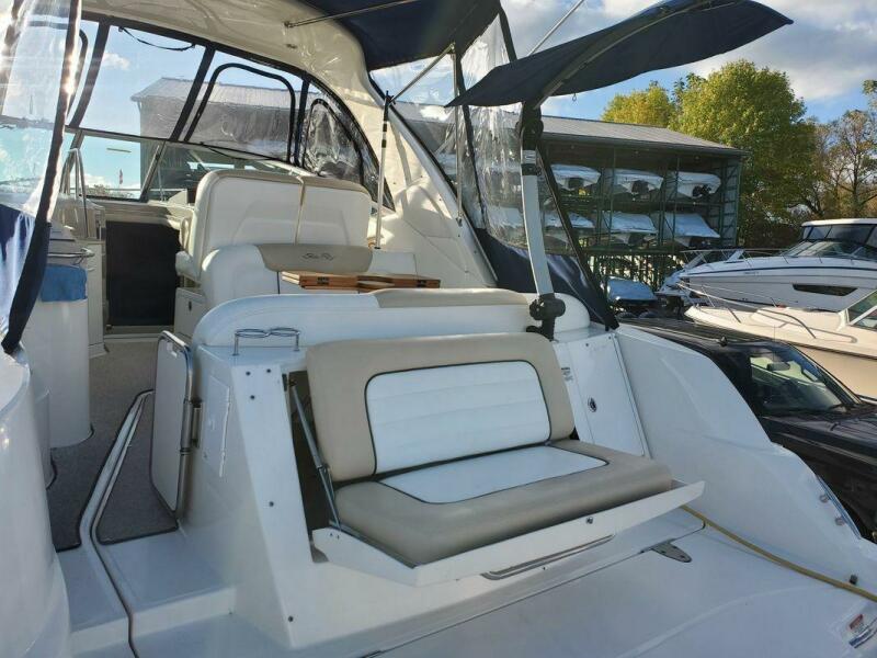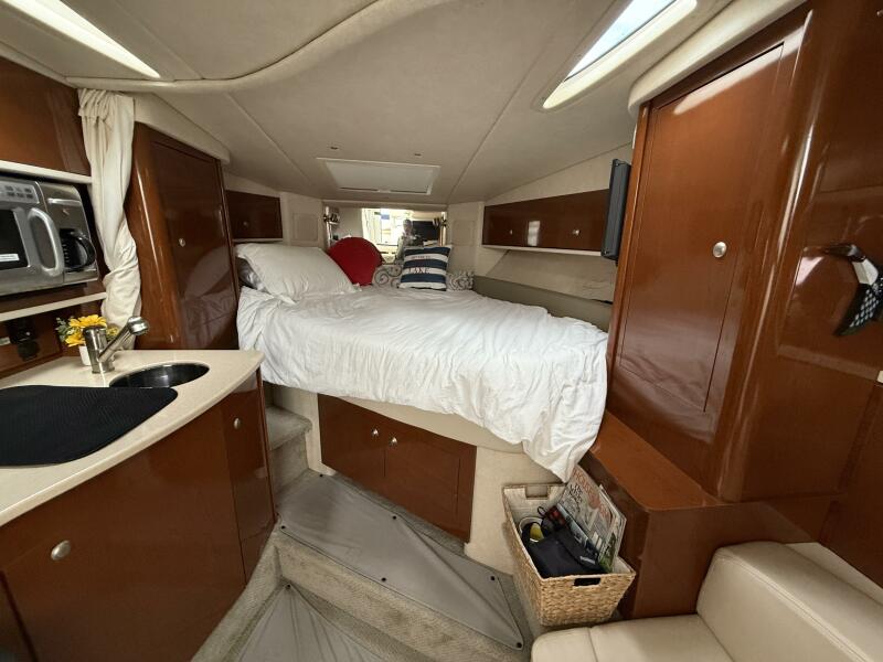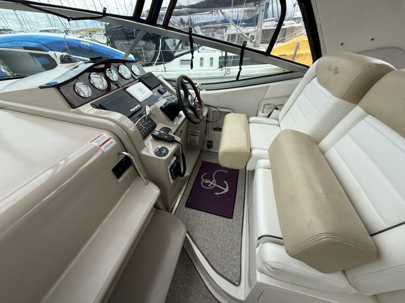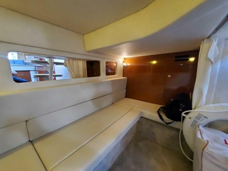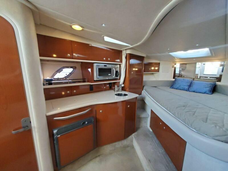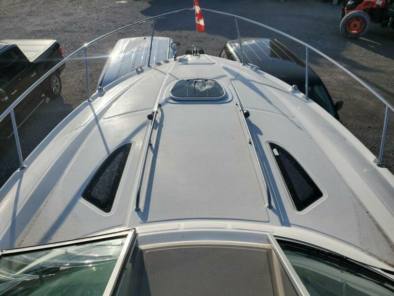 Well-maintained family cruiser with twin 300 hp MerCruiser 350 MAG MPI V8s and V-drives, offering reliable performance and easy handling. Equipped with air conditioning/heat, generator, solar panels, and full shore power. Features a bright, comfortable interior with two cabins, sleeping for five, a well-equipped galley, and a VacuFlush head. The cockpit includes a refrigerator, foldable teak table, and custom transom sunshade. Clean canvas with new bow windows and a current 2025 survey make this a turnkey boat ready for her next owners.