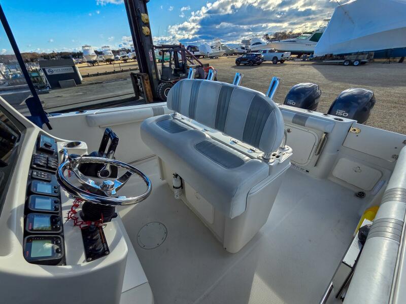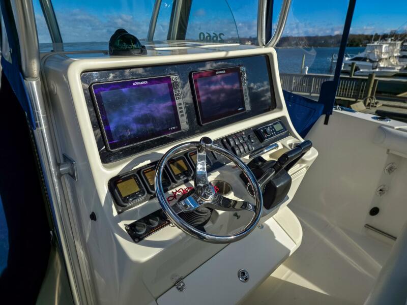 Boat shows very well and has been well cared for. New electronics upgrades and side curtains make this a joy to run in any condition. Outboards were winterized - lower units missing from pictures but are definitely included and no issues with them.