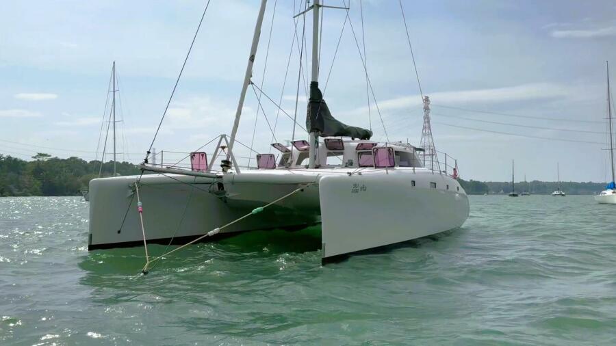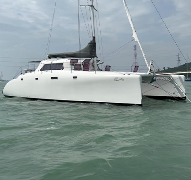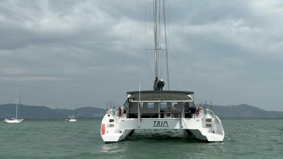 We are proud to present Trim, a fast cruising catamaran designed and built for tropical sailing. Featuring the same proven hull form as the later Asia Catamarans Stealth models, this earlier design still holds its own against newer generations. A simple rig and bowsprit allow for versatile sail configurations, making Trim a highly responsive 39ft catamaran capable of reaching high teens or more under sail.