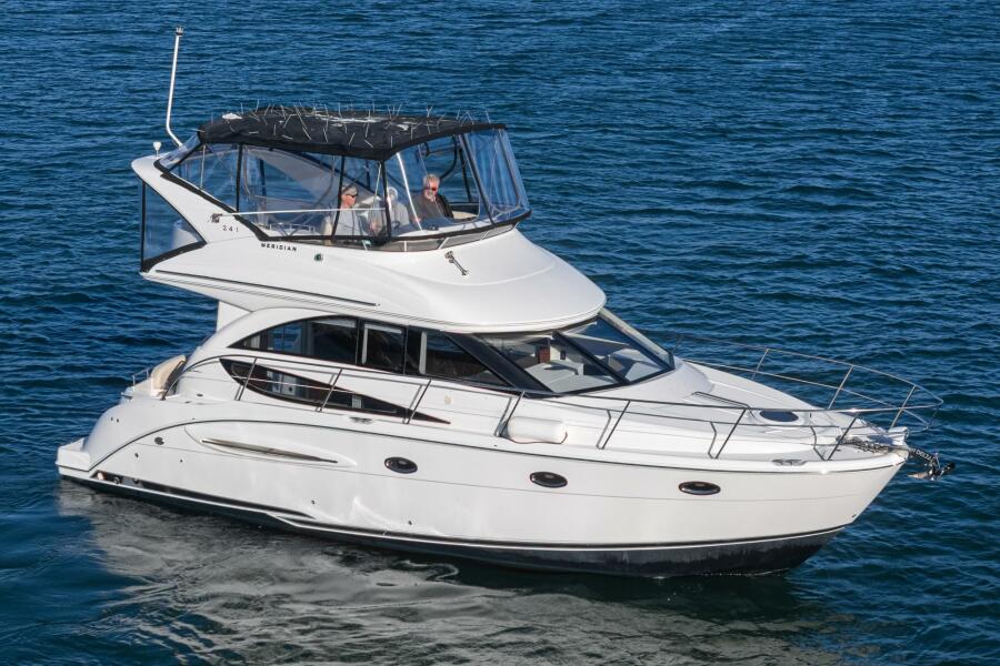 “Adagio” is a beautifully maintained 2011 Meridian 341 Sedan Bridge, combining contemporary styling with the spacious comfort Meridian yachts are known for. Designed for entertaining, cruising, and comfort. With Twin MerCruiser 8.2L Horizon engines, bow and stern thrusters, and Meridian’s Docking on Command system, maneuvering is effortless — ideal for new or experienced owners alike. Her spacious salon, full galley, two private staterooms, and large flybridge make her one of the most comfortable cruising yachts in her class.