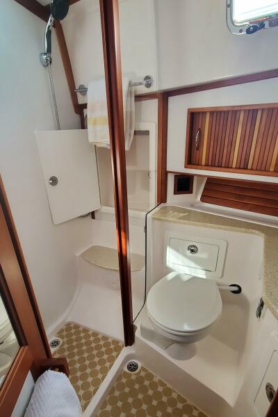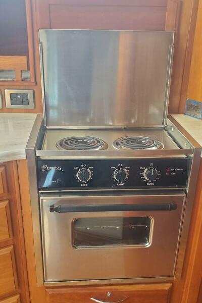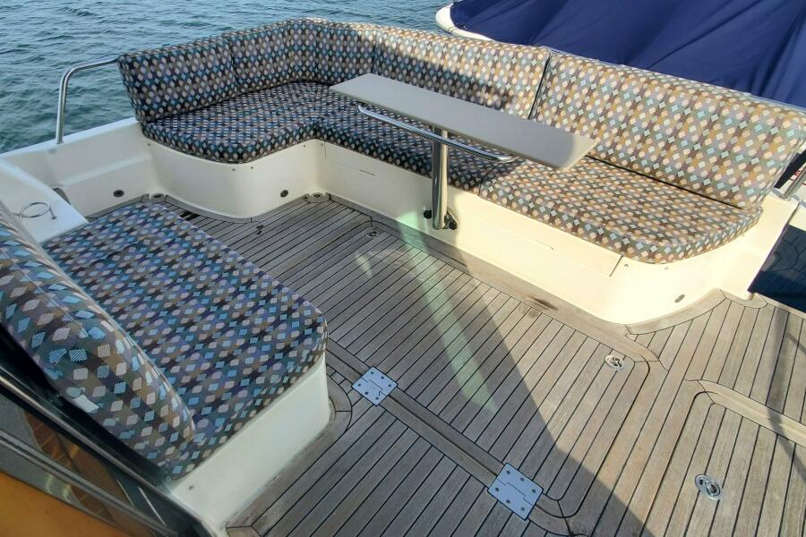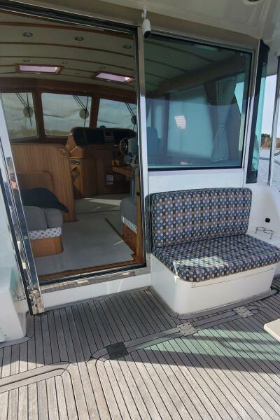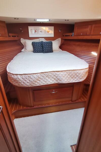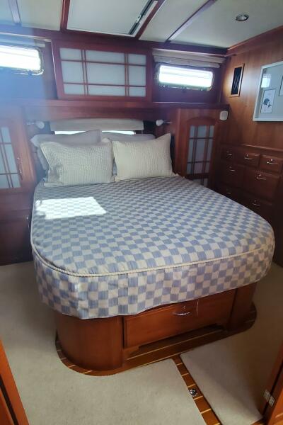 "Brio" features the standard 48SE layout, which includes an en-suite forward VIP cabin, an en-suite master cabin, a midship galley, a raised salon/pilothouse, and a third crew/utility cabin below. The current owners have extensively cruised with her, investing in numerous upgrades and maintaining her to the highest standards.