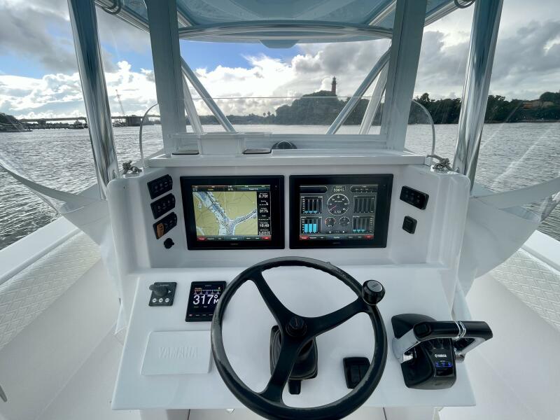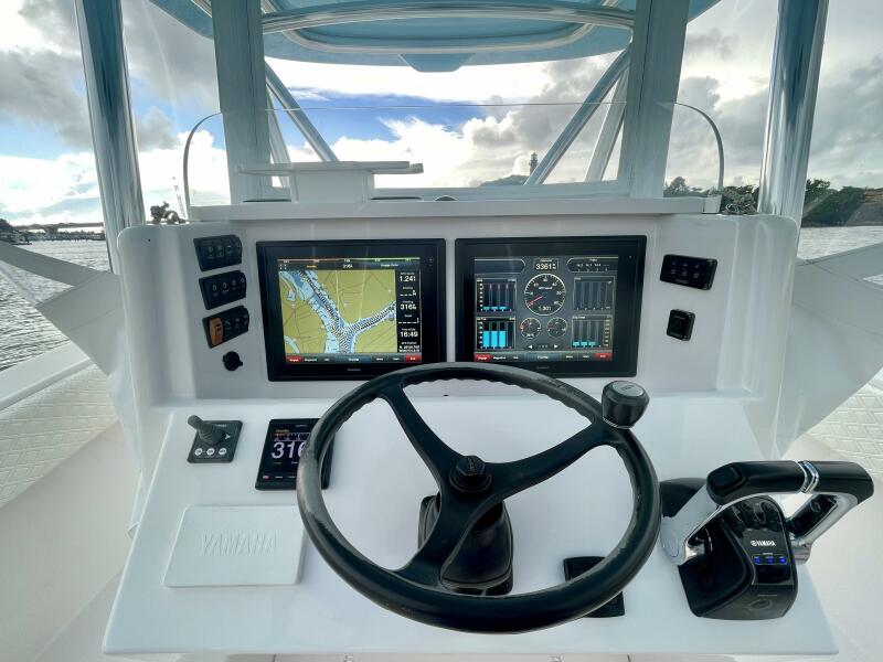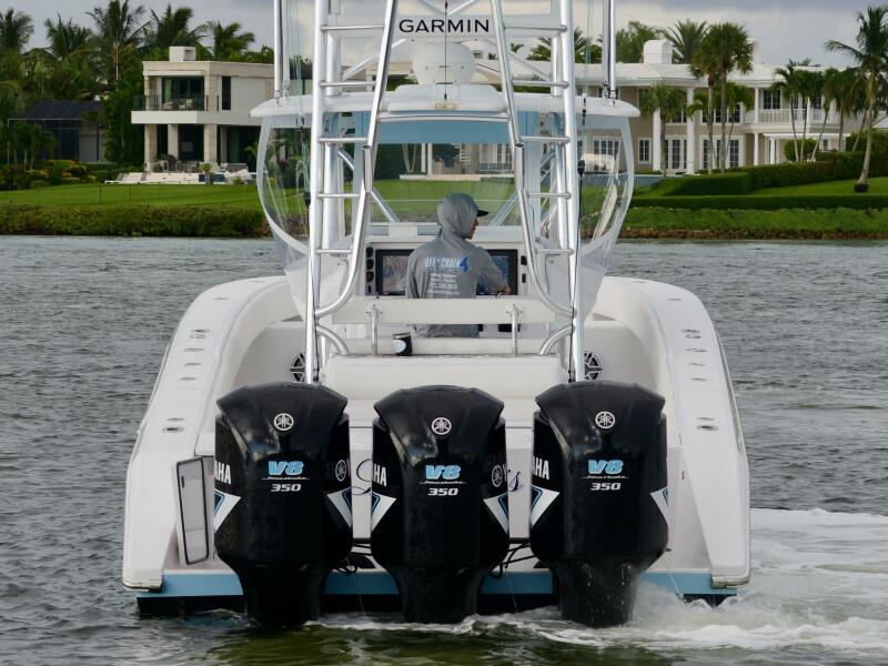 Powered by triple Yamaha 350s, this 39 Venture delivers impressive performance with the reliability and efficiency serious anglers demand. The boat’s custom full tower with complete controls provides outstanding visibility whether you’re chasing pelagics offshore or cruising the islands.