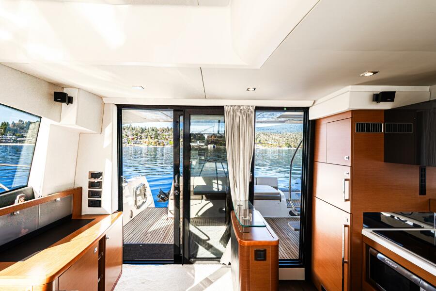 Step aboard and experience the epitome of contemporary luxury, from the pristine white interior to the fully equipped aft galley with seamless access to the covered cockpit—ideal for entertaining. The expansive salon features panoramic 360-degree windows, flooding the space with natural light and offering breathtaking views.