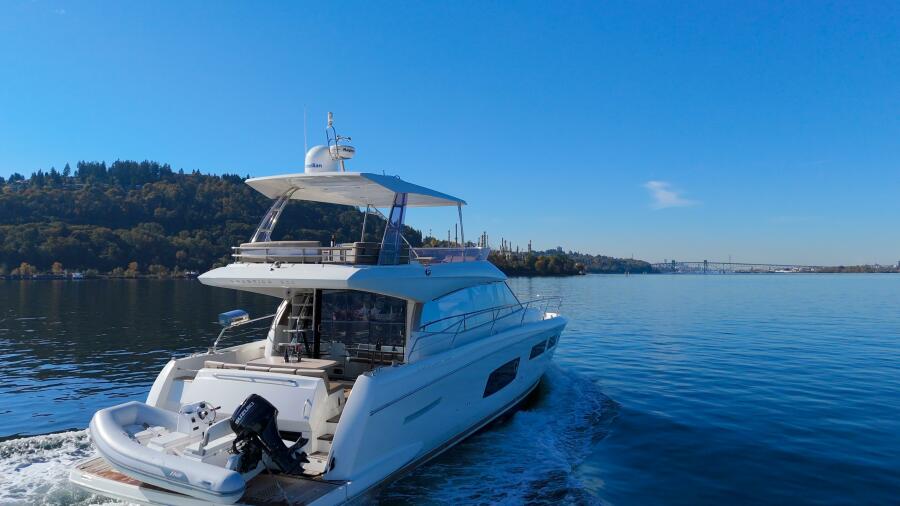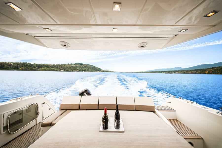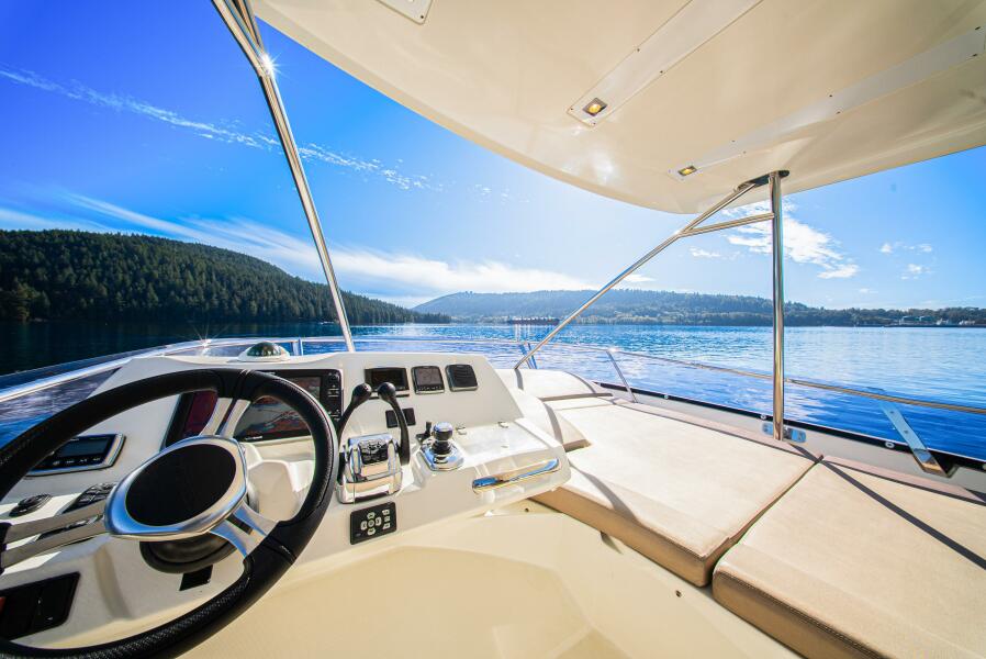 The flybridge hardtop provides a sun-shielded sanctuary, especially appreciated during warm summer months. Once you've experienced this feature, you’ll never want to go without it.