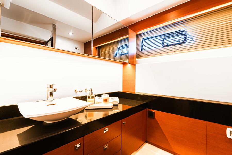 Standing tall? No problem. The salon, galley, and owner’s suite offer full-height headroom, comfortably accommodating tall guests throughout.