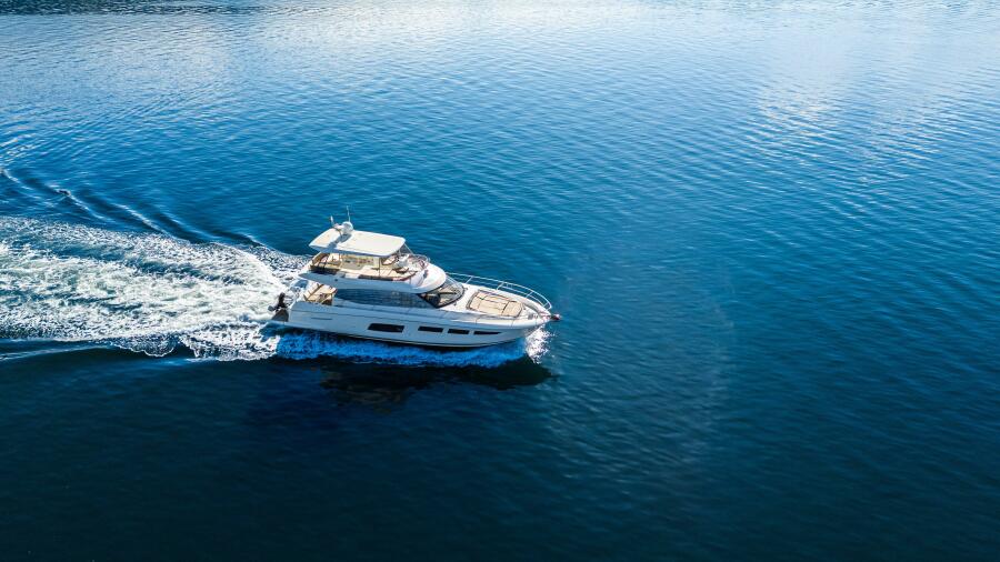 Designed by Garroni, JP Concepts, and Prestige Engineering, the Prestige 550 blends elegant lines with concentrated power and artisanal finishes. With its extended flybridge, sleek profile, and carefully curated interior, this model showcases Prestige’s legendary savoir-faire.