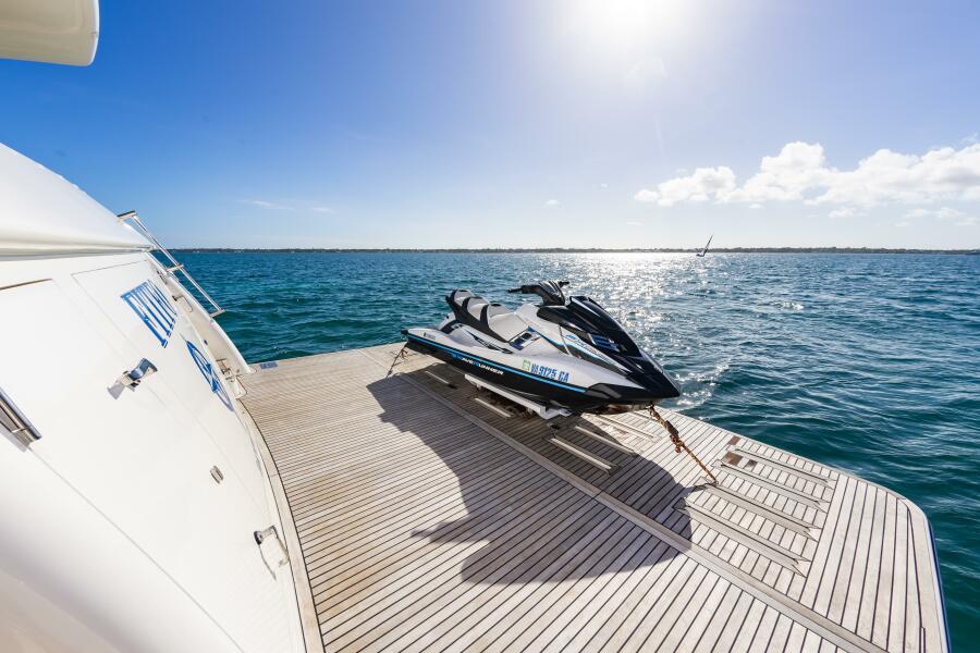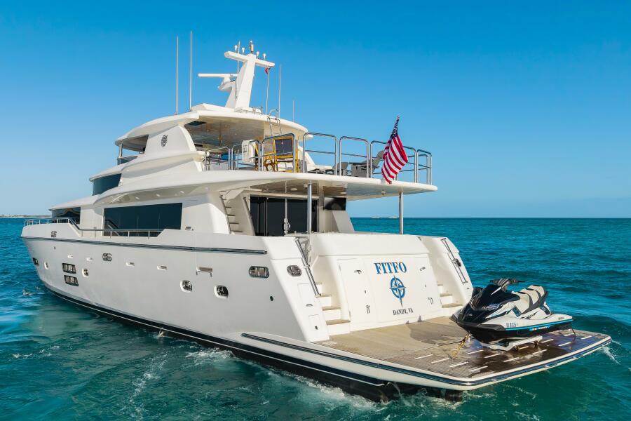 2017 JOHSNON 93’ MOTOR YACHT “FITFO” is hands down one of the most well equipped, clean and turnkey motor yachts on the market today. A two-owner boat, she has never been chartered, just completed am Impressive Yard Period at LMC, maintained and upgraded by Professional Capt and Crew since new. 2017 JOHSNON 93’ MOTOR YACHT unique lines present a distinctive look that stands out among the traditional motor yacht designs. “FITFO” boasts a 4-cabin layout (plus 2 Crew Cabin and Crew Galley with direct engine room access) with an Incredibly spacious On-Deck master cabin. 2017 JOHSNON 93’ MOTOR YACHT key features include a spacious salon with easy access to the galley and on-deck master, a hydraulic swim platform that lowers into the water with a touch of a button, a large flybridge that extends almost two thirds the length of the vessel, and an oversized bow seating area.