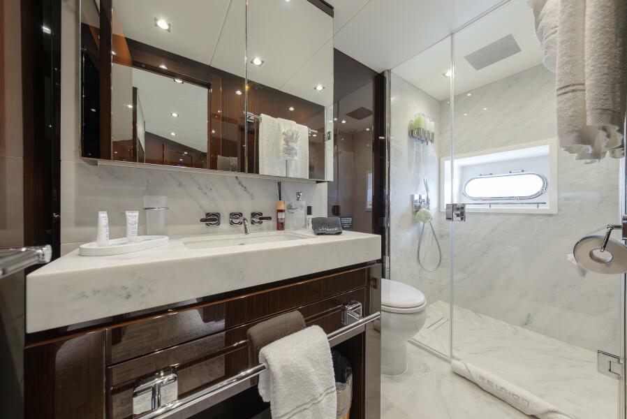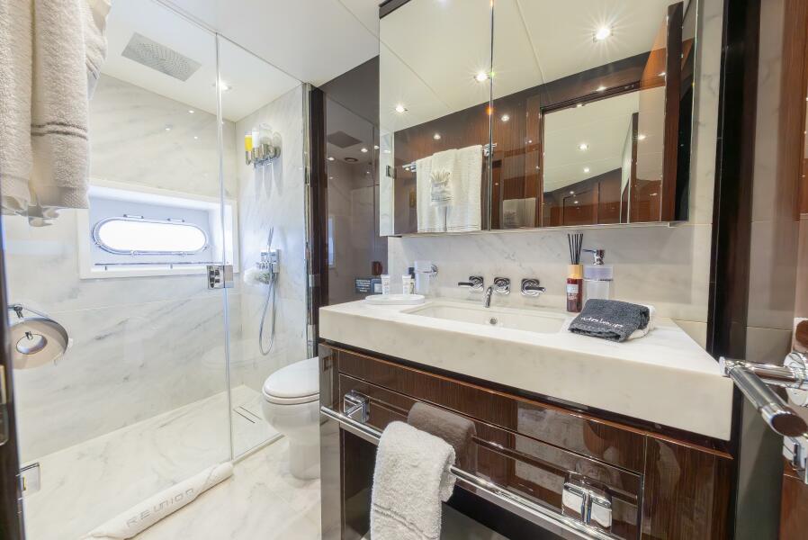 REUNION is a stunning example of the 2019 Sunseeker 95 Yacht, offering a perfect fusion of luxurious interior design and expansive exterior spaces. With thoughtful craftsmanship and modern amenities, this yacht distinguishes itself as a top-tier vessel in its class. The five-stateroom layout, including the rare feature of an on-deck master suite, delivers an exceptional blend of comfort, privacy, and convenience, an offering seldom found on yachts of this size. Every cabin is designed to meet the highest standards, ensuring an experience of refined elegance for owners and guests alike.