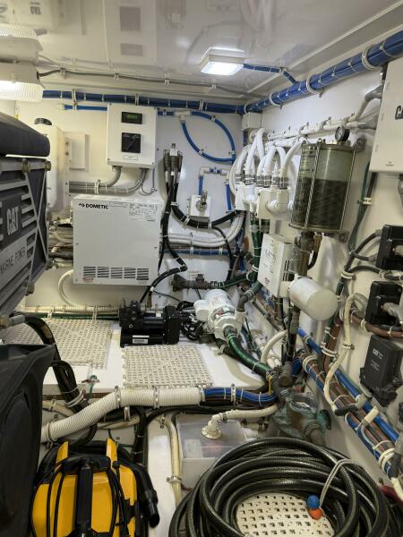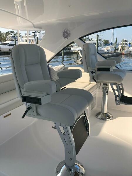 "Start Me Up" is a beautiful one owner 2020 Hatteras GT45 Express. She was custom built for cruising SW Florida and the Bamahas. She has been stored a custom built lift from December to June each year and in a CAT 5 indoor building in Stuart, FL from June until December. She is loaded with many standard, optional and custom features. A few highlights include only 532 hours on her Caterpillar C-18 Acert, 1135 bhp diesels, Seakeeper 6 Gyro Stabilization System, watermaker, full three sided air conditioned hardtop express, 3 Stidd helm chairs, two stateroom / one head layout, custom framed door built into the aft acrylic enclosure, Garmin electronics package, natural walnut interior wood, swim platform, electric bow and stern thrusters, spare props and much more!