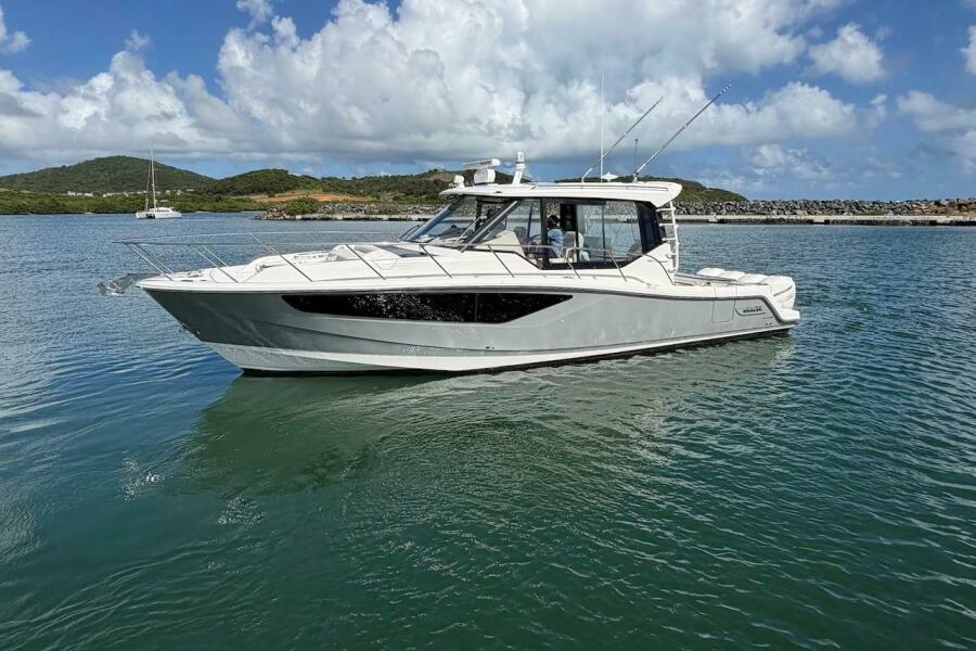 The 405 Conquest, known as the SUV of the Sea, delivers incredible performance, versatility and ease of use. From the spacious bow lounge to the ultra-convertible helm companion zone, to the inviting cabin with master and two guest sleeping quarters, the 405 represents the pinnacle of luxury and sophistication in the Conquest series.