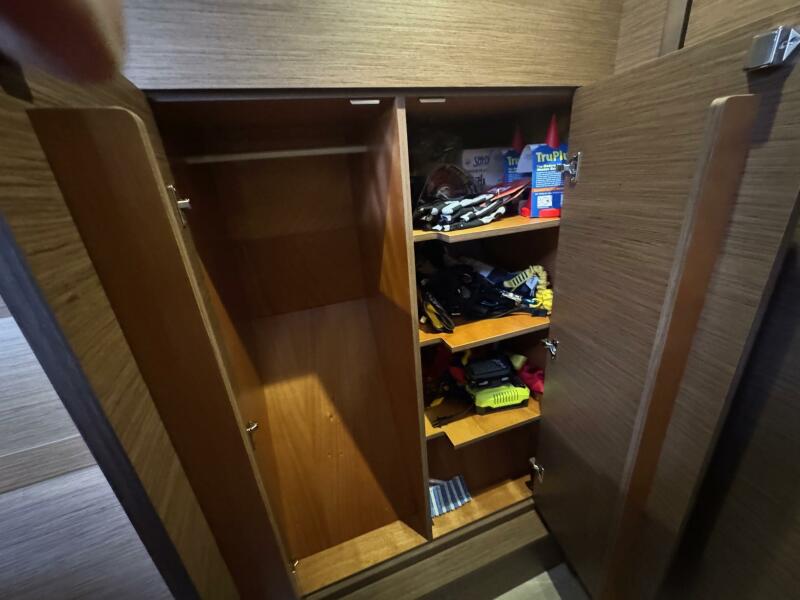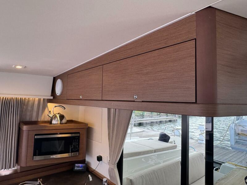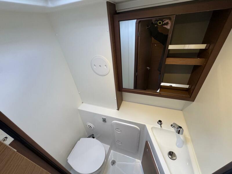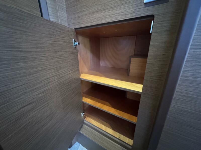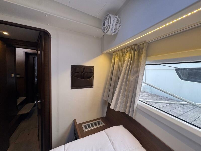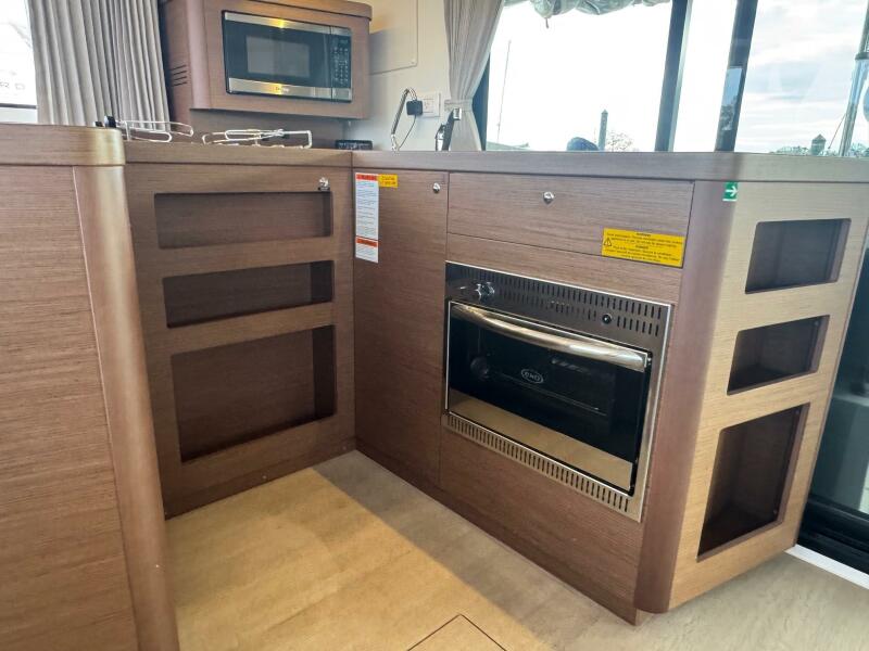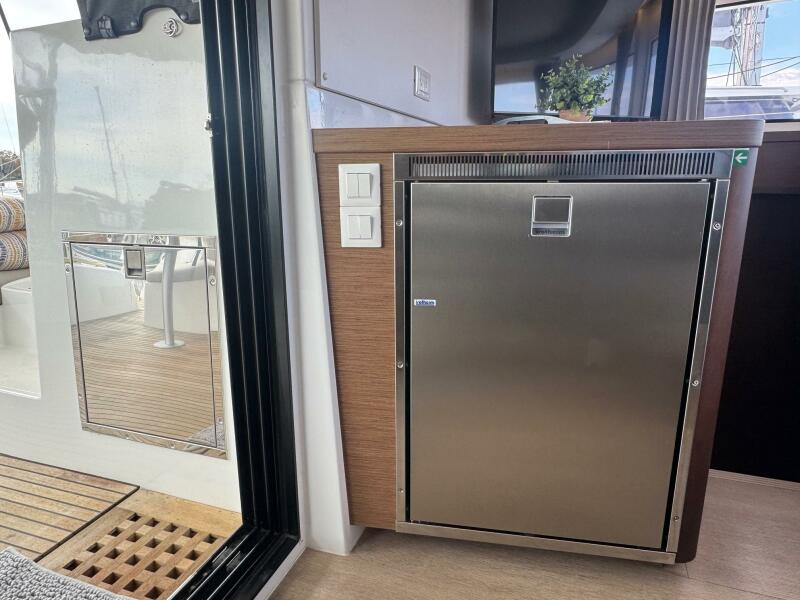 The Owner’s Version configuration dedicates the entire starboard hull to a spacious owner’s suite with an oversized head and separate shower. The port hull features two well-appointed guest cabins, each with its own en-suite head, offering excellent comfort and privacy for family or guests.