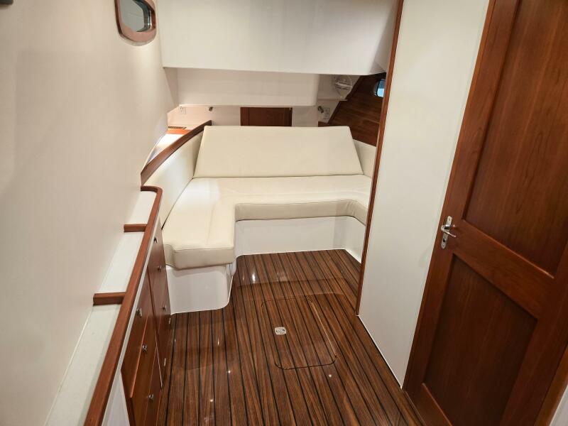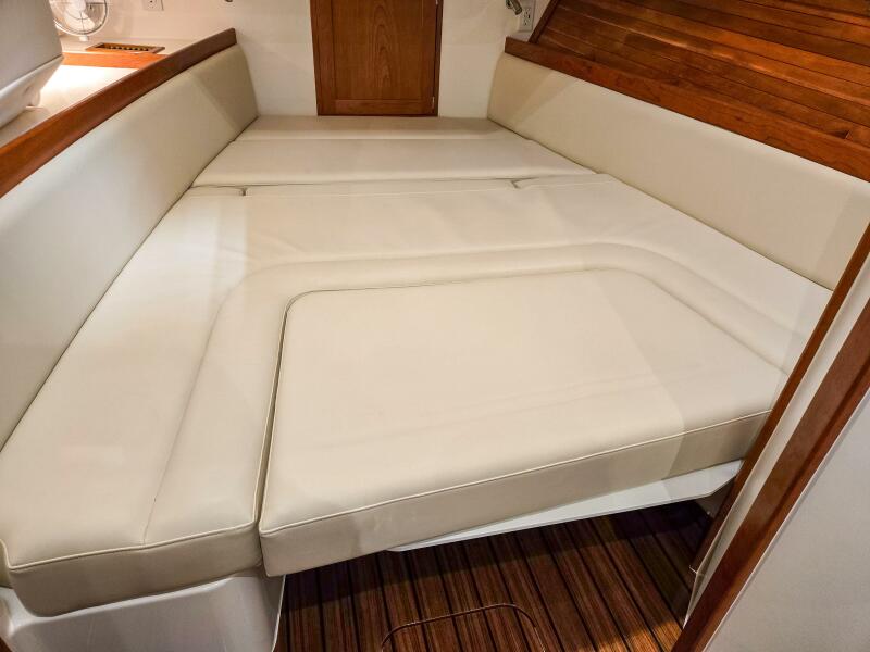 • Overnight accommodations: Below deck features a large V-berth, a double amidships berth, and a yacht-sized head with a glass-enclosed shower.