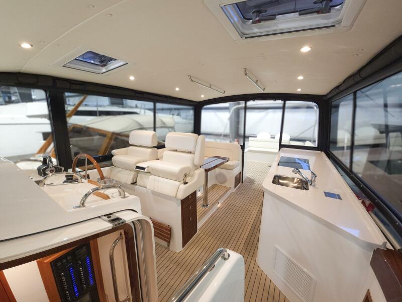 • Spacious design: Four distinct social zones, galley-up layout, and MJM’s signature indoor/outdoor pilothouse for year-round enjoyment.