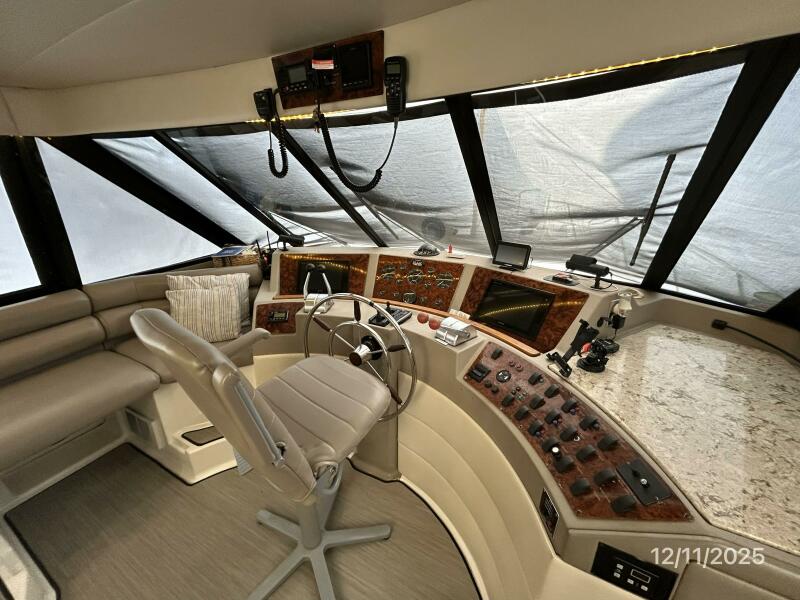 Camelot is a 1998 47' Bayliner 4788 raised pilothouse motoryacht. She offers twin Cummins 370 HP main engines, Westebeke 12.5 kW generator, Vetus bow and stern thrusters, oil change system, newer engine mounts, newer Tides dripless shaft seals, AIS, raised pilothouse design and a 3 stateroom 2 head layout. The seller also upgraded the engine room access with a centerline hatch between the hatches over the main engines. Camelot is a Great Loop veteran. She is shrink-wrapped on the hard for Winter storage, but she is accessible for inspection. Updated photos and video will be taken after her Spring launch.