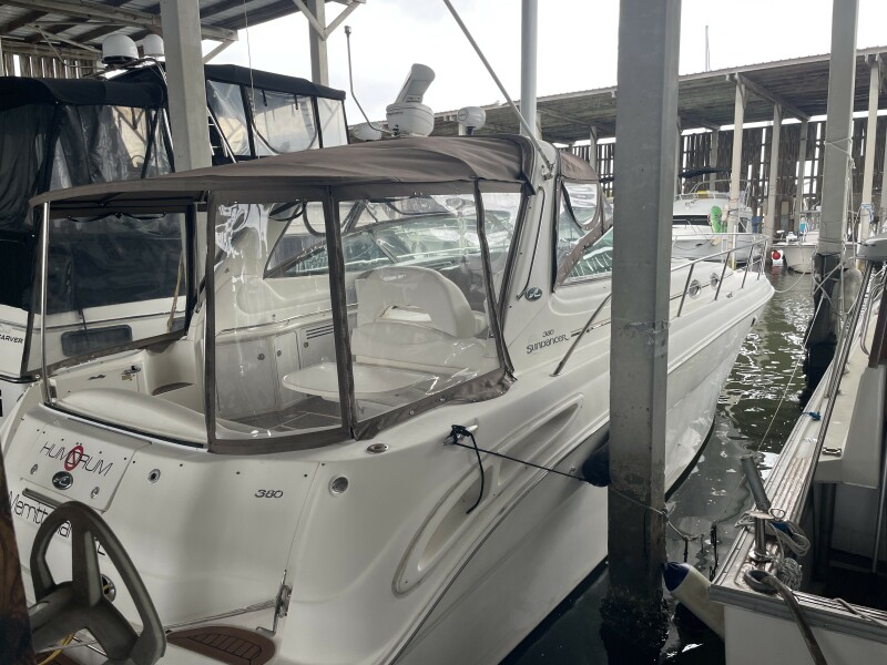 2001 Sea Ray 380 Sundancer with Low Hour 8.1S Mercruiser V-Drives, Newer Raymarine Axiom Plotter/Radar, VHF, Auto Pilot, Near New Full Custom Camper Enclosure, Sleeps 6, Full Head with Separate Shower Stall, Great Boat For the Whole Family to Cruise The Coast or Maybe a Bahamas Run. Priced To Sell!