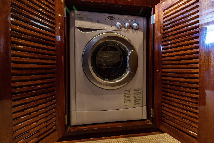 There are granite counter tops, two roomy refrigerators and one freezer, a dishwasher, stainless sink and microwave oven. Below the Mahogany floors is an 8 x 2 x 2 storage area allowing you to cast off for an extended trip without restocking for quite a while Guest stateroom #1 is to starboard and has an en-suite head with separate stall shower, side by side berths, a hanging locker, drawer storage, stereo, flat screen TV with separate satellite receiver/tuner.