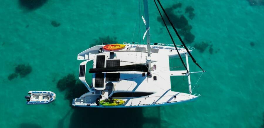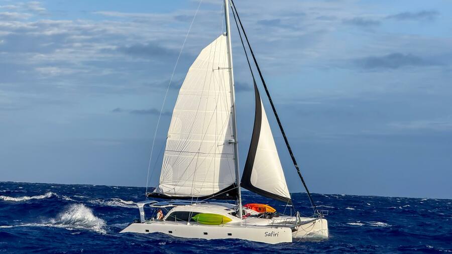 Well equipped for off-grid cruising, Safiri has 840Ah of lithium batteries, a 120-litre-per-hour watermaker, 3,000W Victron inverter, 2.6kVA generator, washing machine and 1,780W of solar capacity. Sailing systems include 2024 mainsail and genoa, screecher, bowsprit, furling systems and electric Anderson winches for easy short-handed sailing