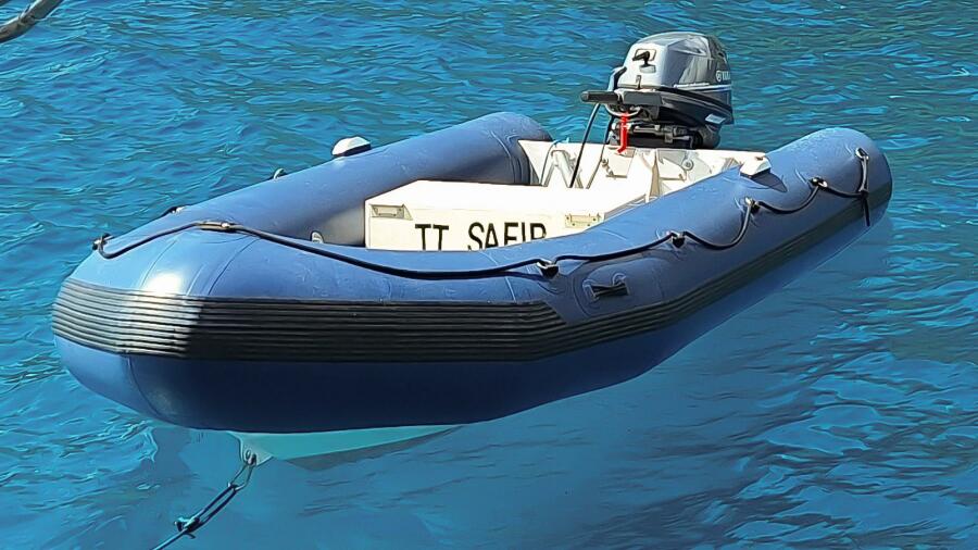 Safety features include a four-person liferaft, EPIRB (expiry 2028), offshore flares, six electric bilge pumps and multiple fire extinguishers. Ground tackle comprises a 55kg Rocna anchor with 80 metres of 10mm chain and Anderson windlass new in 2024. A custom 3.8-metre tender with 25hp Yamaha outboard, davits, hardtop bimini, deck shower, BBQ and full cruising inventory complete this package