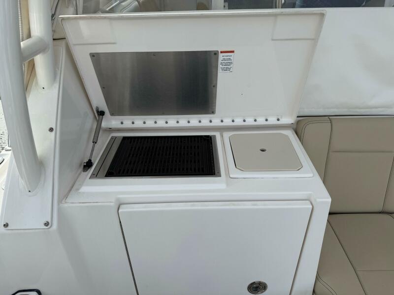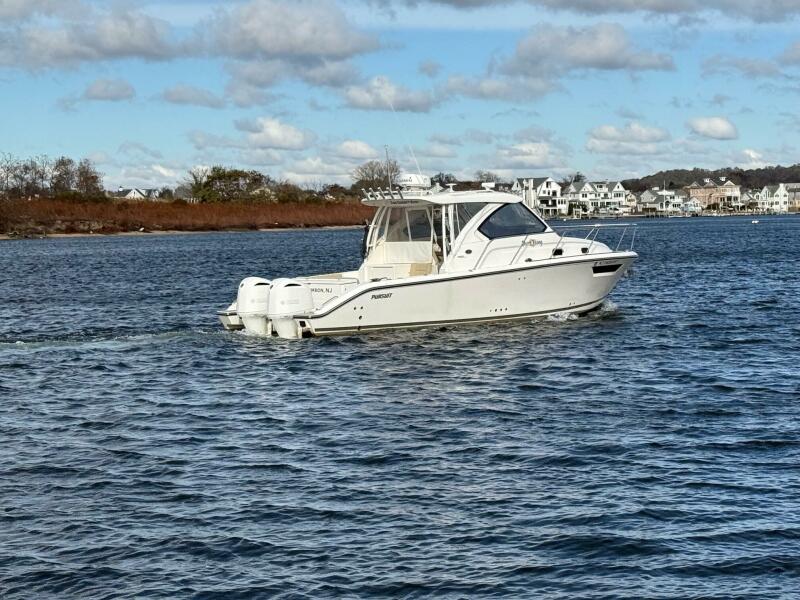 Pursuit’s OS 325 delivers innovation and excellence in the perfect sized package. A combination of finely engineered features designed with a timeless and elegant, yacht-like exterior. Her cabin finished with interior hardwoods, solid stock trim and modern fabrics comfort you for an intimate overnight in your private cove or harbor. When you’re ready to fish, the cockpit allows you to move around freely whether you are trolling offshore or dropping live baits at anchor or on the drift. After a few bites and your fair share of fresh catch, take the time to prepare a quick meal around the optional electric grill and outdoor entertainment center.