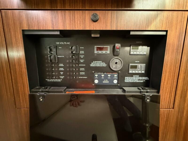 Has manual sunshade, AC/Heat in cockpit and cabin, port side fold out seat
