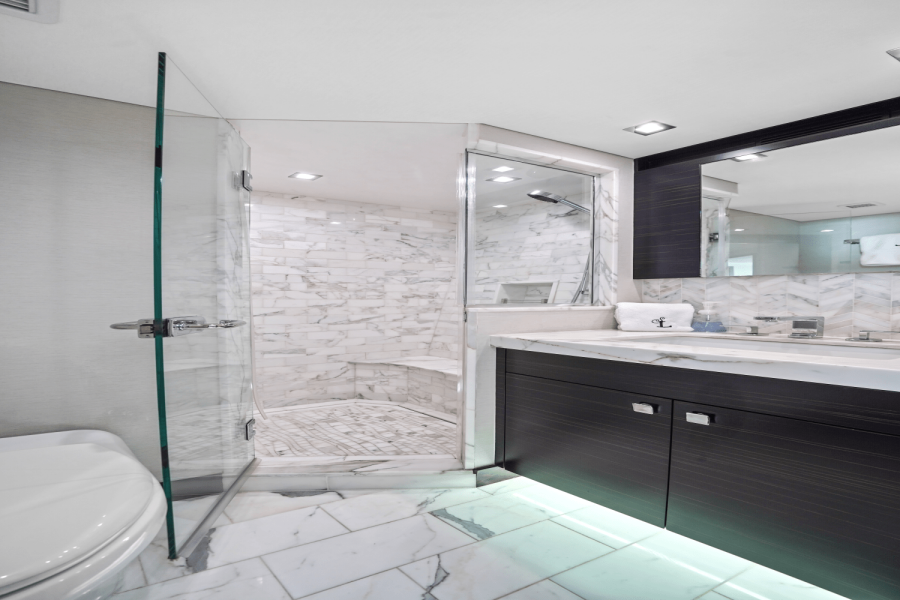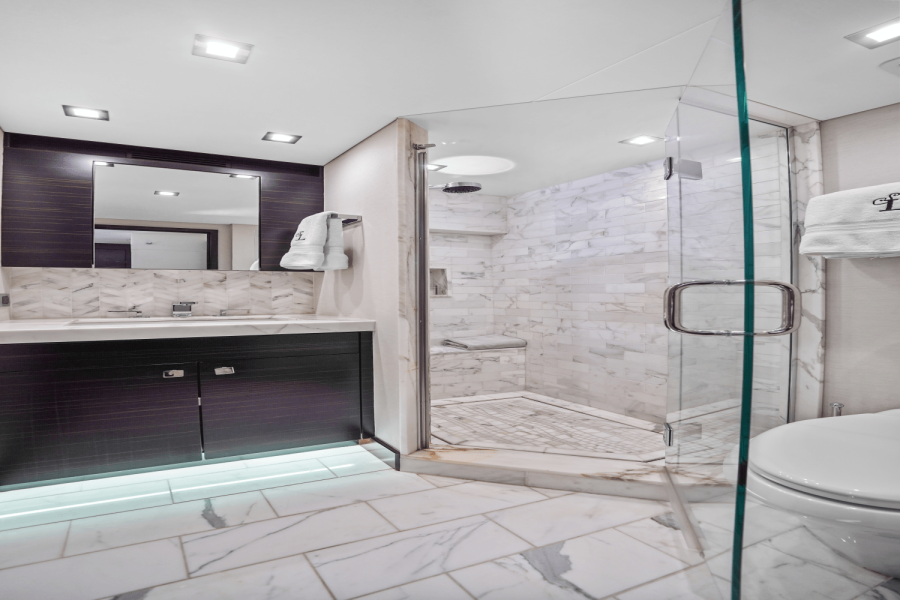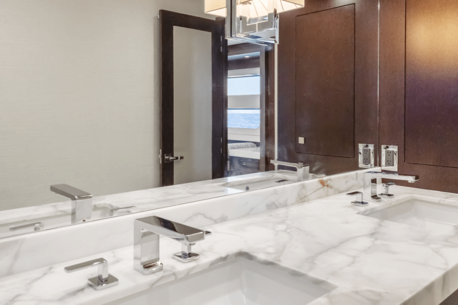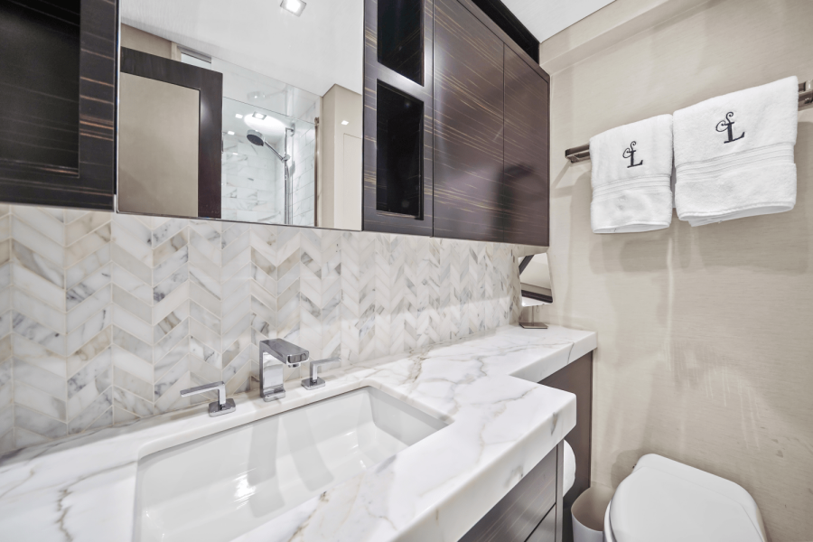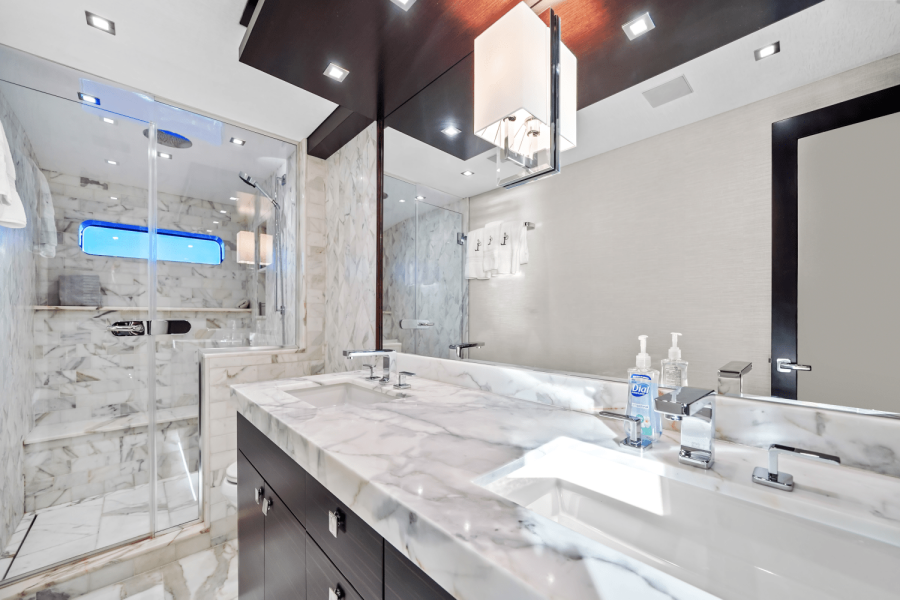 Custom-built and delivered in 2019, "Surplus Lines" represents the peak of American design, engineering and construction from Hatteras. Tailored by experienced owners to accommodate their large family with over $2 million in custom features, Surplus Lines is powered by upgraded Caterpillar C32 1900 HP engines (2200 hours) complemented by the CAT360 joystick control system ($250k), making docking and maneuvering effortless.