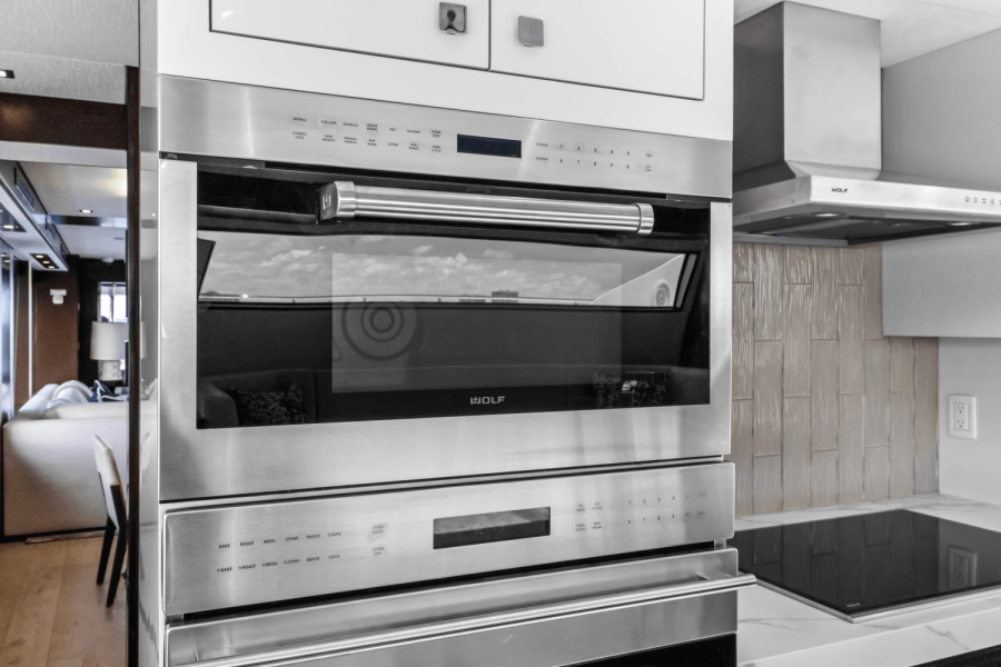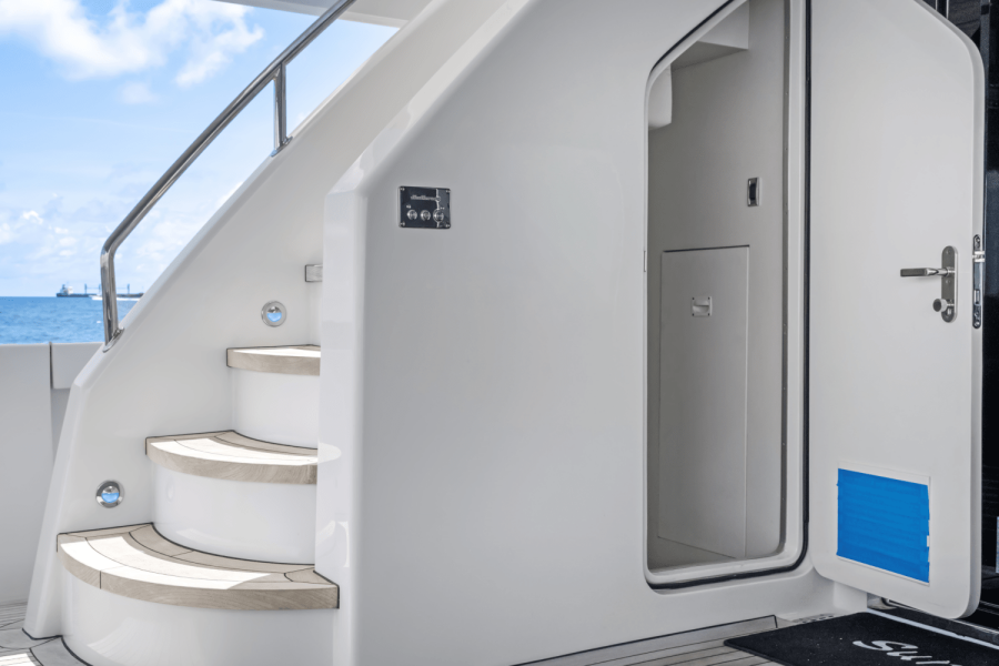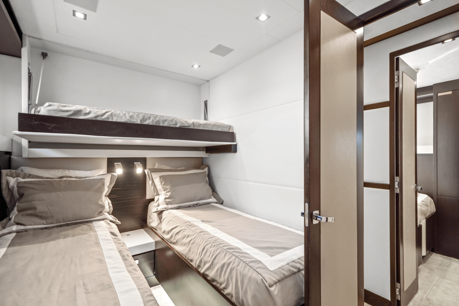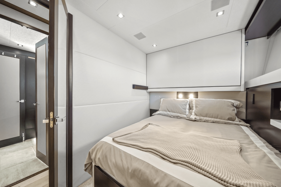 The M90 Panacera features a country kitchen layout with an inviting galley suited for owner use and enjoyement and four staterooms (all down). The port side salon opens to a custom balcony with triple sliding glass doors, creating a seamless connection between indoor and outdoor spaces. Other standout features include dual water makers, zero speed fin stabilization (hydraulic), and hydraulic bow and stern thrusters. iPad controls manage lighting, entertainment, and electric blinds, enhancing comfort and convenience. Boat is located off site, call to schedule showings.