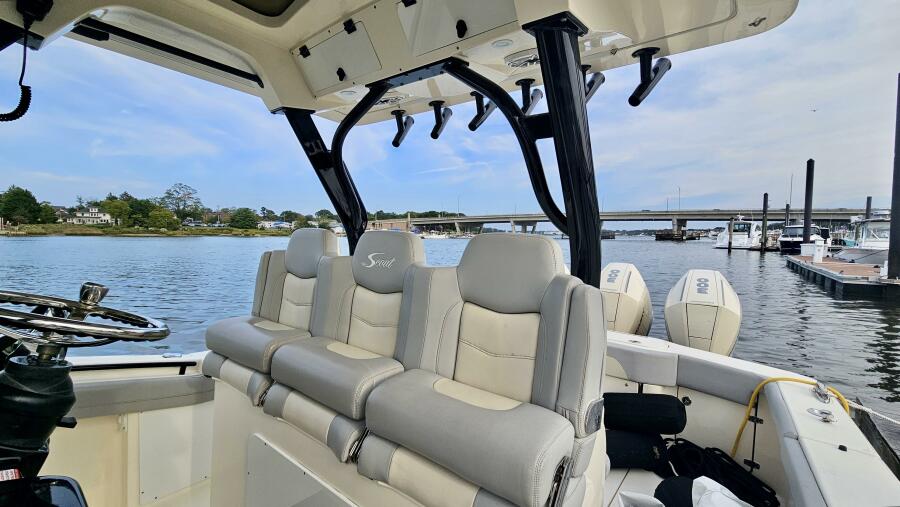 Fresh listing, we're looking for a quick deal on this one before Thanksgiving! Best deal on a Scout 355 on the market with all the right options AND Seakeeper gyro. Lift kept & rack kept since new with no bottom paint, powered by Mercury V8-300's w/ under 200 hours, and just received all NEW Grigio upholstery!