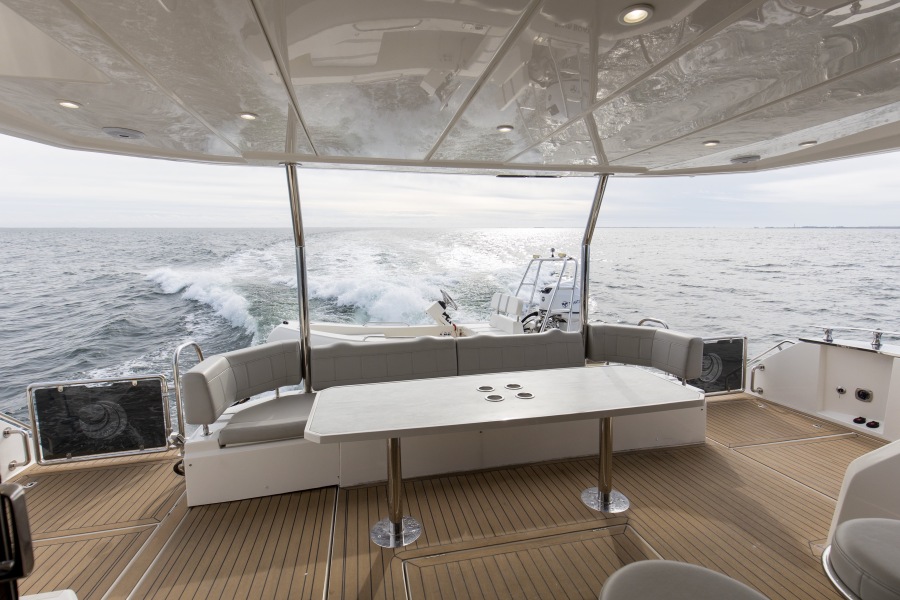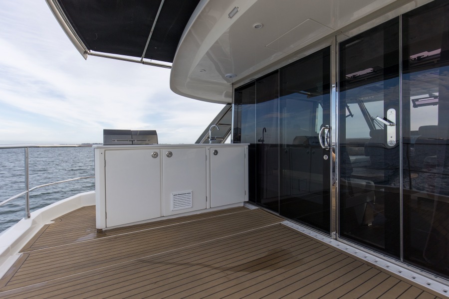 FULLY ENCLOSED FLYBRIDGE SKY LOUNGE WITH UPGRADED FURNITURE
