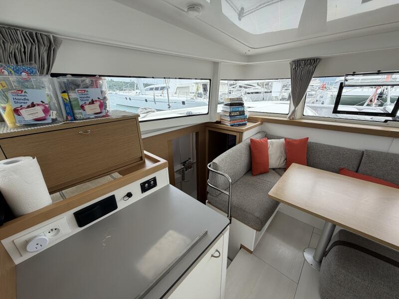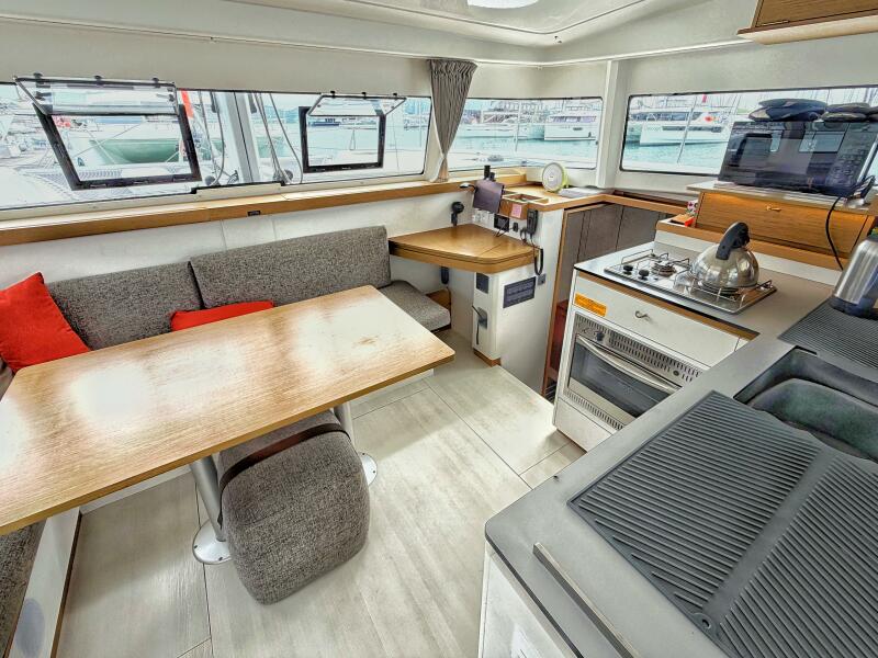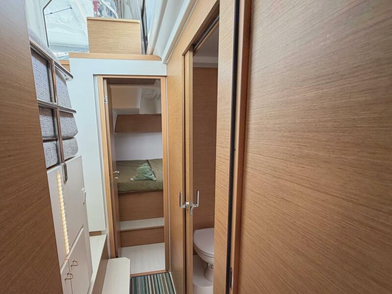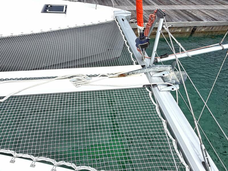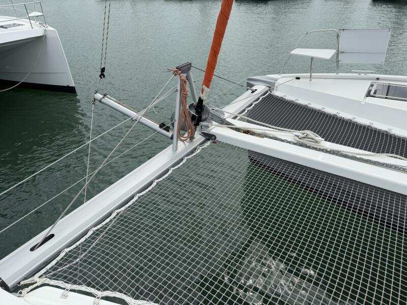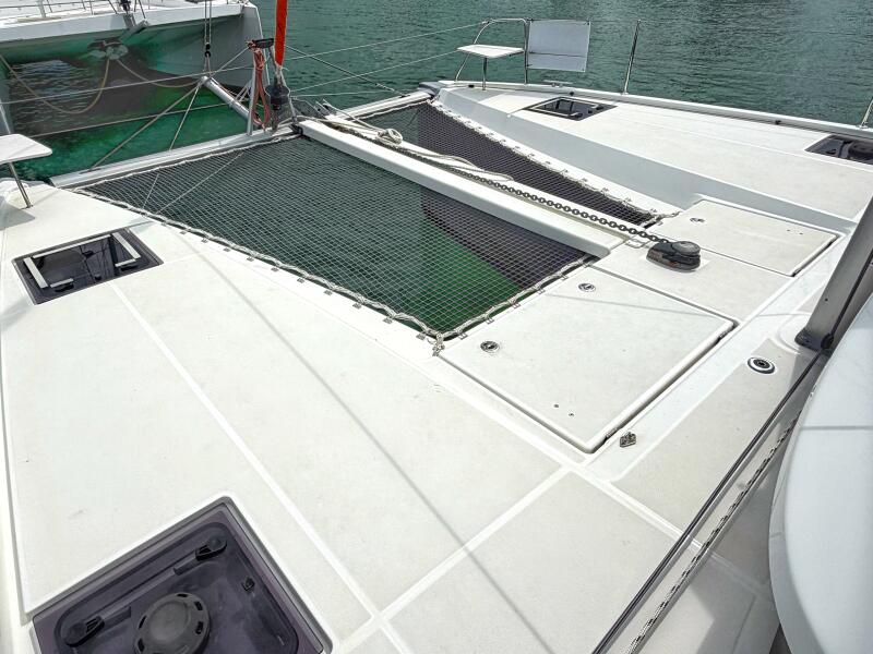 Performance is enhanced by a larger standard sail area than comparable cruising catamarans, and this vessel includes the Pulse Line option with a taller mast and increased upwind sail area for improved light-wind capability. Constructed using vacuum infusion with balsa coring above the waterline and on deck, Pegasus achieves an excellent balance of strength and lightness. The mini keels are designed to share in a major side impact without compromising hull integrity.