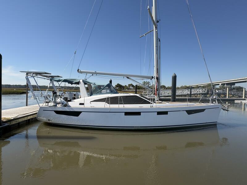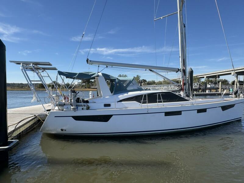 Off The Grid was commissioned and delivered to her owner in Lymington, UK, in 2024. She is the first of the new Southerly 420s. She features a robust variable draft swing keel, twin rudders, a raised salon with excellent visibility, two heads, and a smartly designed rig/deck plan that makes the boat easy to handle.