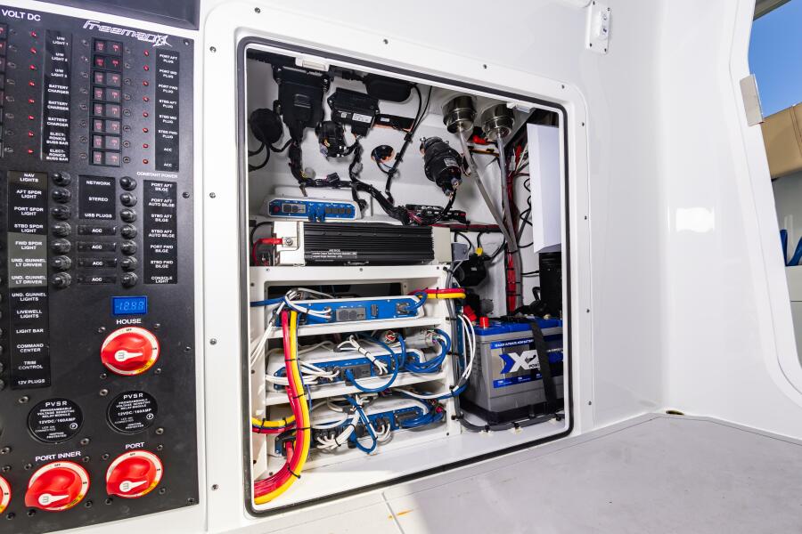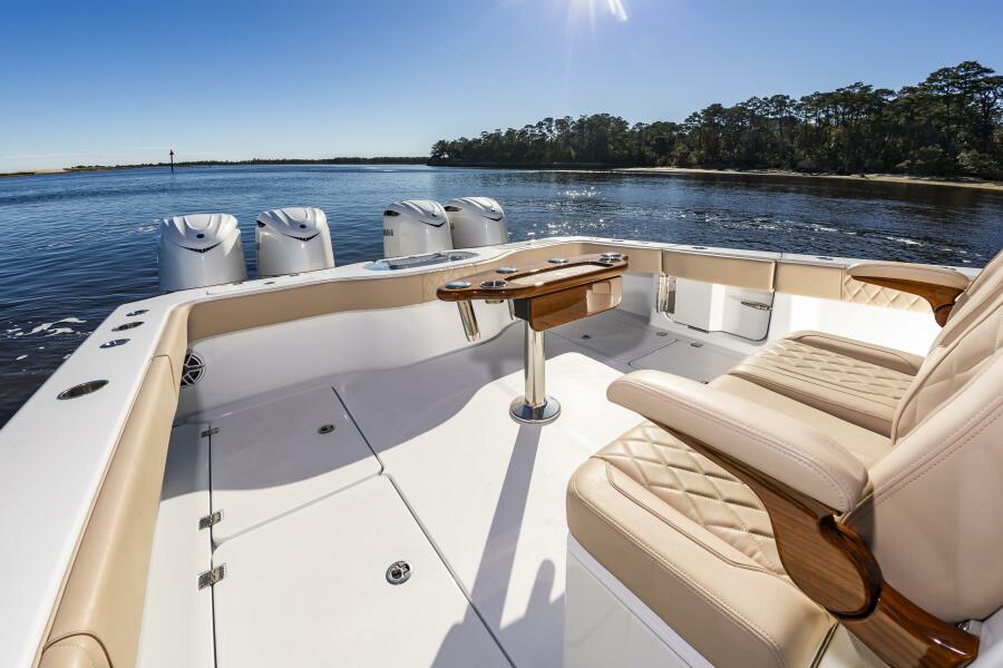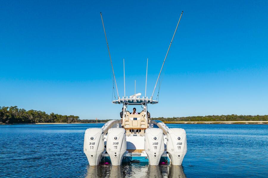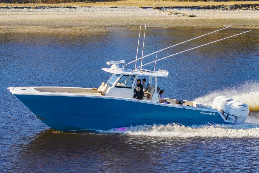 "Krusty Krab II" is a like new 2025 Freeman 38 that's ready for her next owners!! Powered with quad 350 Yamahas with HelmMaster Joystick system with ONLY 140 hours and full factory warranty, she's just broken in! She features a full Garmin electronics suite, StarLink, Teak seating package, rocket launcher and much more (see list below). Call Preston Frieze with Bluewater Yacht Sales today for more information/showings (910)473-2628.