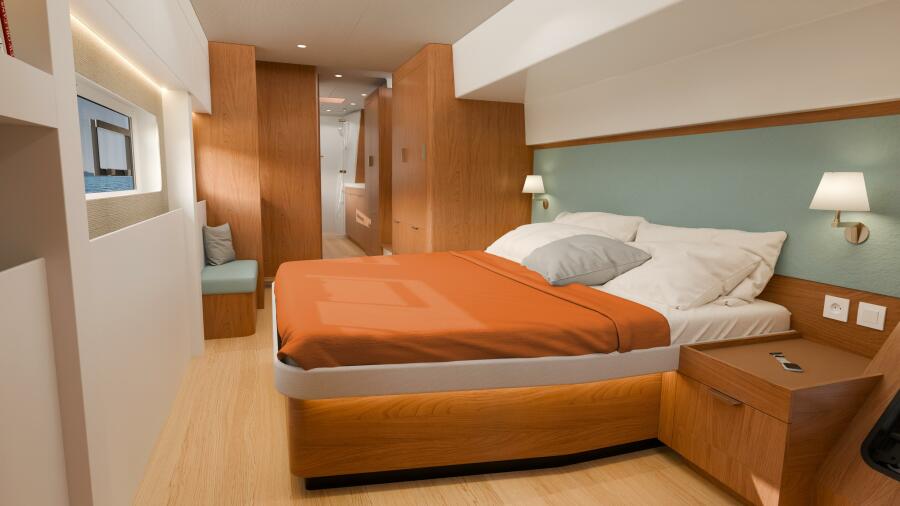 Available in 3, 4, 5, and 6-cabin versions, it offers unparalleled layout flexibility, accommodating up to 16 berths. The spacious cabins and customizable configurations meet all needs, whether for a family cruise or a trip with friends.