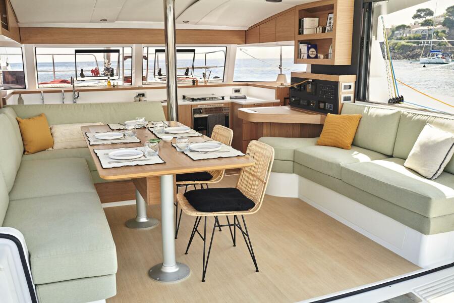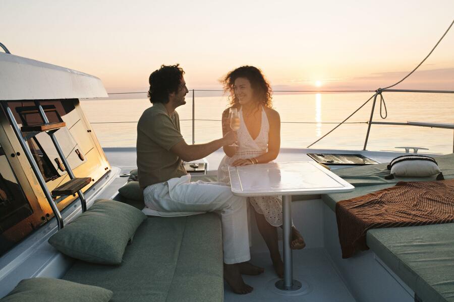 • Twin Helm Stations: Allow for a lower boom and increased sail area. Whether island-hopping in the Caribbean or cruising the Med, the lightweight design and generous sail plan ensure responsive handling and sailing pleasure.