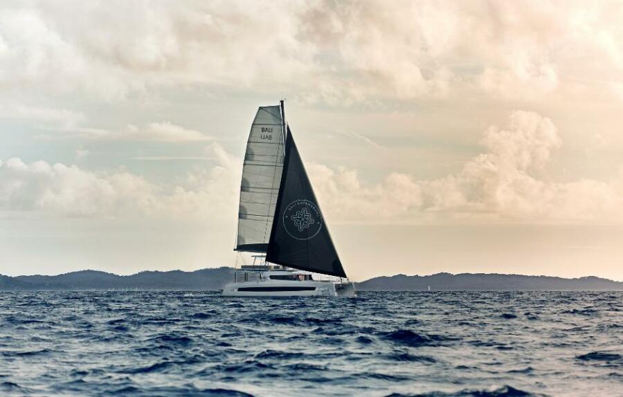The BALI 5.8 is designed to sail with elegance and efficiency. The optimized sail plan offers up to 240m2 of surface, and its self-steering jib guarantees easy maneuvers, even in strong winds. Made in France, it reflects the expertise and innovation of BALI Catamarans.