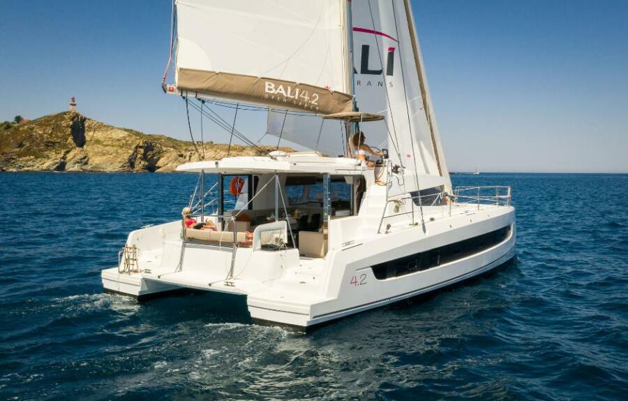 - Performance & Practicality: Built with lightweight, high-quality materials and Catana’s advanced construction techniques, the Bali 4.2 delivers reliable performance without sacrificing load capacity. With a 211-gallon fresh water tank, 211-gallon fuel capacity, and optional solar panels, it’s ready for extended bluewater cruising. The self-tacking jib and optional Code Zero ensure easy handling in varied conditions.